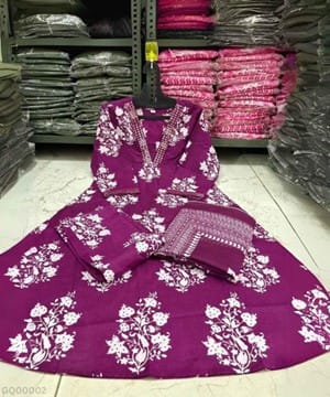 ✅ 3-Piece Set – Anarkali Kurti, Pant & Dupatta