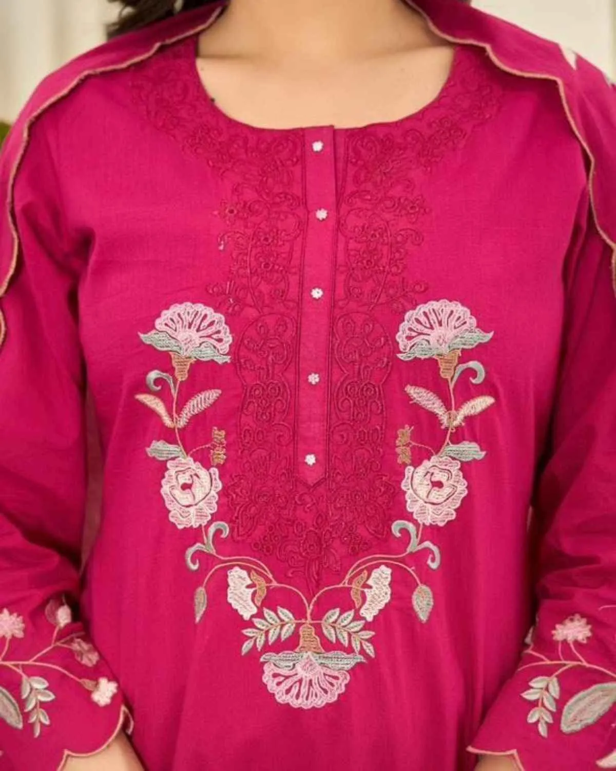 Step into unparalleled comfort and timeless style with QuinKart's Classy Mulmul Cotton Full Embroidery Kurti, Pant, and Dupatta 3-Piece Set! This exquisite ensemble is designed for ladies who seek both elegance and ease, promising "Always Best Quality". Crafted from premium Mulmul Cotton fabric, this set offers a luxurious softness and exceptional breathability, making it your ideal choice for long days and warm weather. Experience the gentle touch of mul cotton against your skin, ensuring comfort throughout any occasion. The highlight of this beautiful set is the full embroidery work adorning the Kurti and Dupatta. The intricate floral motifs add a sophisticated and festive touch, blending traditional craftsmanship with contemporary design. The detailed digital print further enhances the visual appeal. This complete 3-piece set includes a stylish Kurti, a comfortable matching Pant, and a graceful Dupatta. The Kurti boasts a length of 44 inches, the Pant is 38 inches long, and the Dupatta measures 2.10 meters, ensuring a proportionate and flattering silhouette for all. Available in Two beautiful colors (like the vibrant fuchsia and serene blue pictured), this fully stitched set comes in a wide range of sizes: M(38), L(40), XL(42), and XXL(44). Whether you're looking for a Mulmul Cotton Kurta Set with Dupatta, searching for Women Mul Cotton Kurti Set with Dupatta online, QuinKart brings you a superior choice. Our Mul Cotton Kurtas online are designed to provide both elegance and supreme comfort, making this set a must-have. While we also offer Chikankari Mulmul Kurta, this particular set focuses on beautiful full embroidery. Embrace comfort, class, and captivating design with this versatile Mulmul Cotton set. It's perfect for festive celebrations, casual outings, or simply enjoying your day in style. Shop now and experience the QuinKart difference!