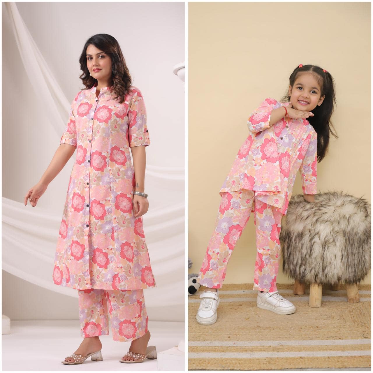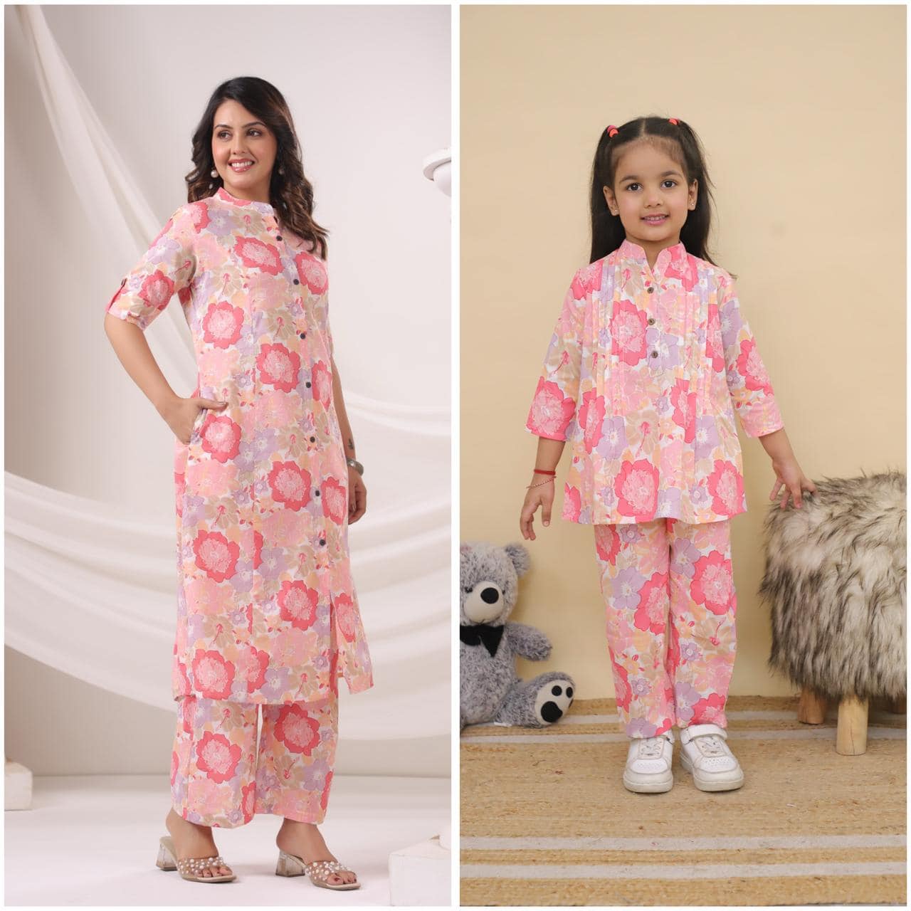 Celebrate the bond between mother and daughter with our exclusive Matching Cotton Co-Ord Set Combo. Designed for comfort and style, this combo features: