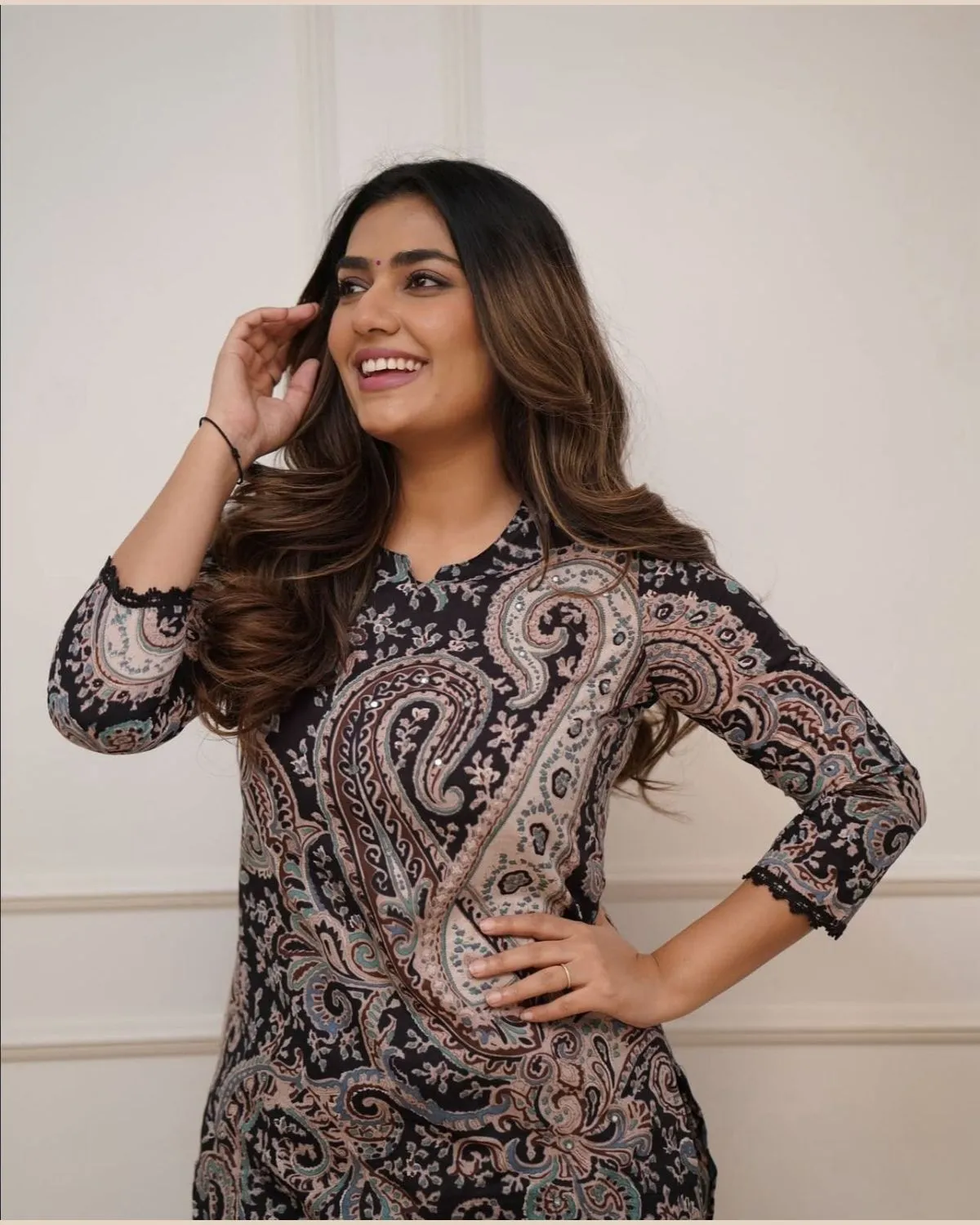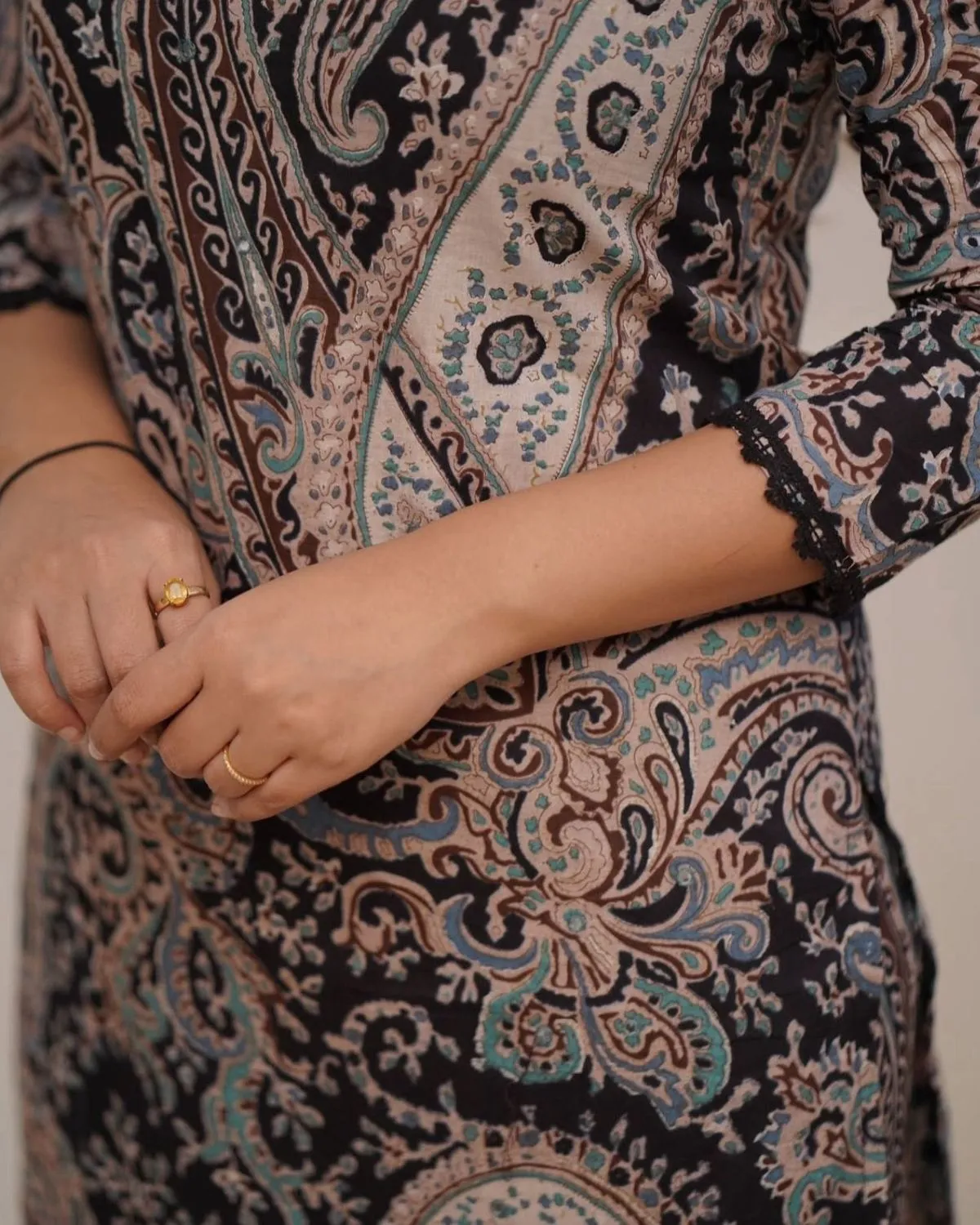 Introducing the QuinKart New Launch Designer Cotton Kurti & Pant Set, designed for the fashion-forward Indian woman who values both style and comfort. This exquisite two-piece ensemble is crafted from heavy quality cotton fabric, ensuring a luxurious feel, excellent drape, and long-lasting wear. It's the perfect blend of traditional elegance and contemporary design, making it an ideal choice for festive wear, family gatherings, or any special occasion. The Kurti boasts a designer appeal, reflecting the latest trends that fashion insiders embrace. Its superior cotton ensures breathability and comfort even during extended wear. The accompanying Cotton Pant is thoughtfully designed with a convenient one-side pocket, adding practicality without compromising on style. This set offers a cohesive and polished look that's ready to wear. We understand the importance of a perfect fit, which is why this set is available in a wide range of sizes: 38, 40, 42, 44, and 46. It's ready to dispatch, so you can receive your new favorite outfit quickly. Don't just follow trends—wear what truly makes a statement. Embrace the blend of comfort, quality, and designer style with this new launch from QuinKart. It's time to share your love for this trendy Kurti and Pant set!