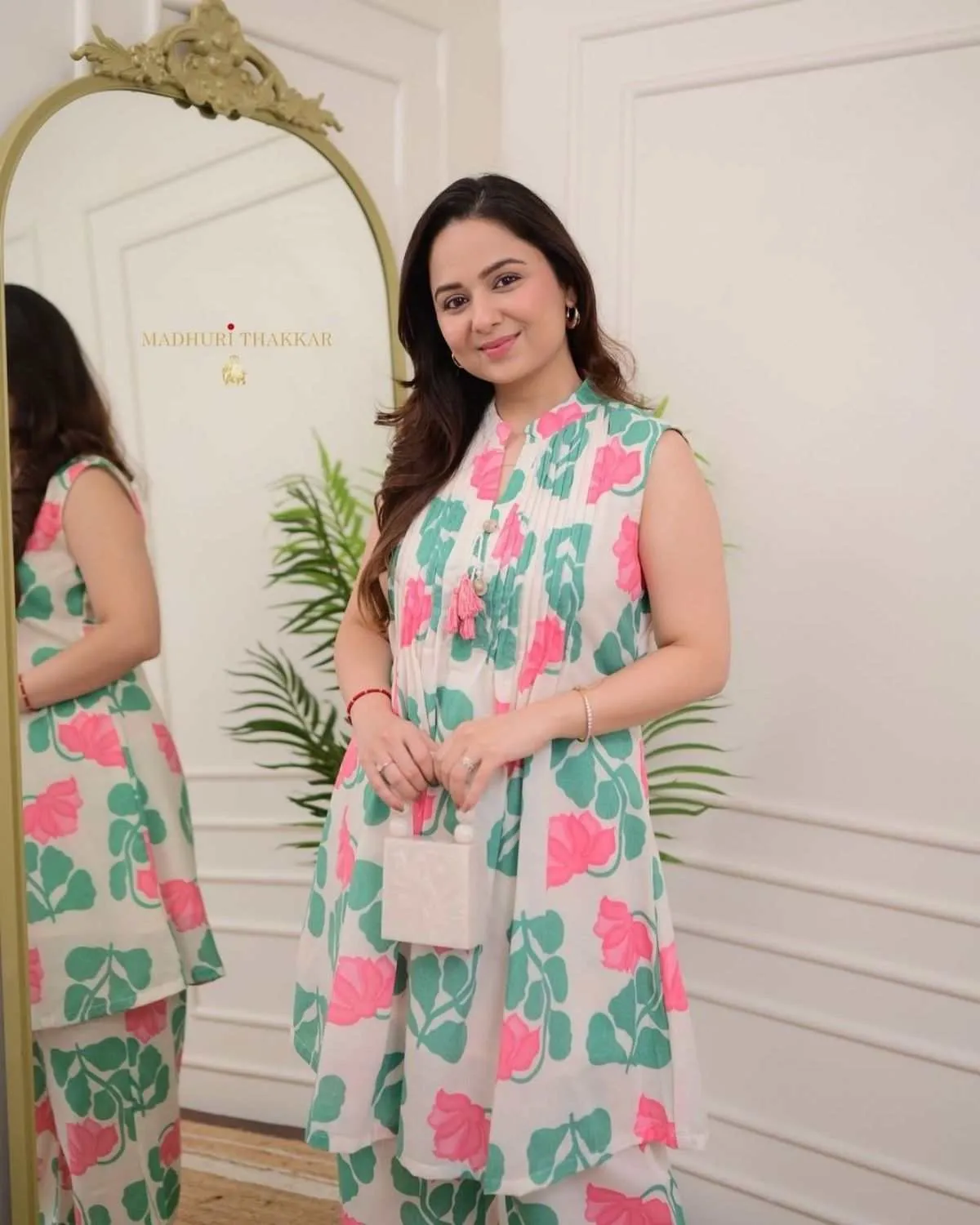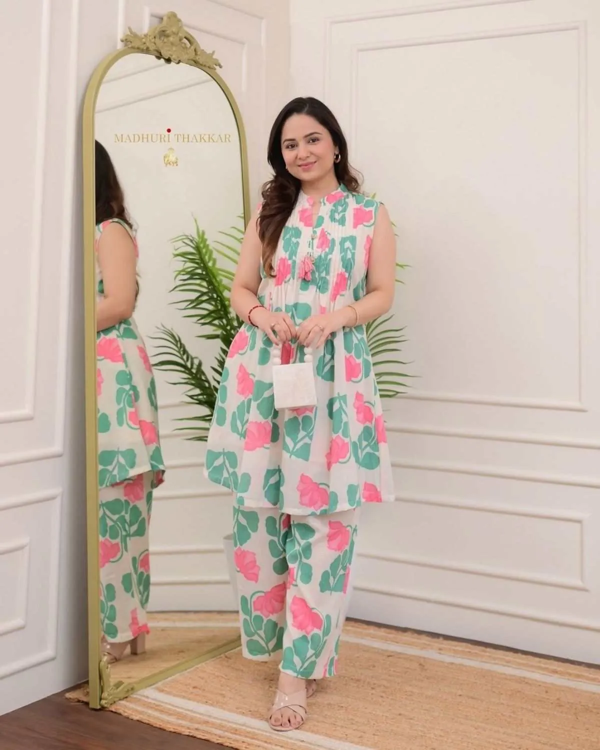 Matching Cotton Co-Ord Set for Mother & Daughter – Printed Kurti & Bottom Combo | Free Shipping India