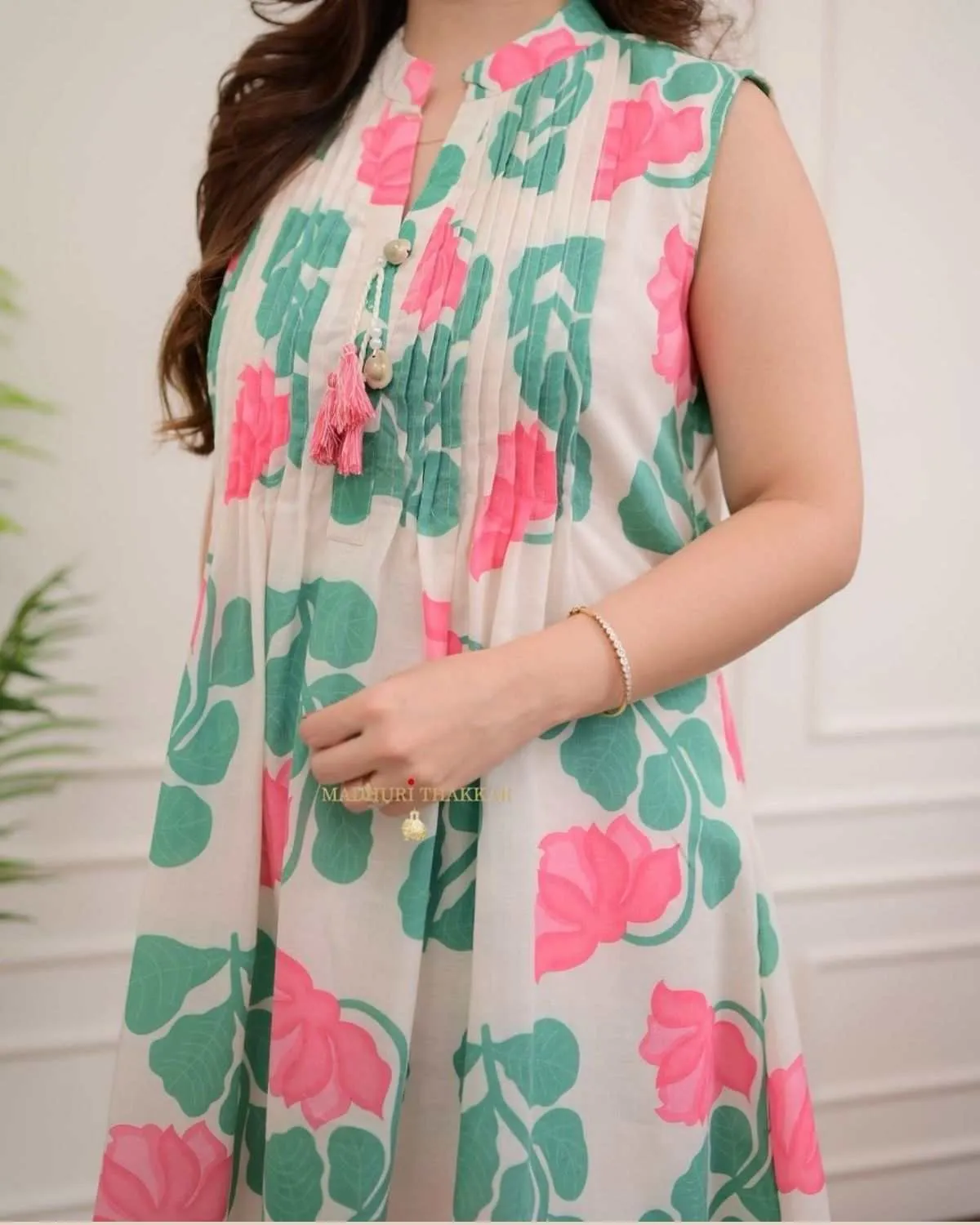 Relaxed Fit Printed Cotton Kurta Set with Tassel Detail – Effortless Chic for Women | QuinKart Daily Wear