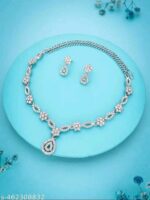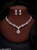 Name: silver Plated Necklace Set With American Diamond Base Metal: Alloy Plating: Gold Plated Stone Type: Cubic Zirconia/American Diamond Sizing: Adjustable Type: Necklace and Earrings Net Quantity (N): 1 Country of Origin: India
