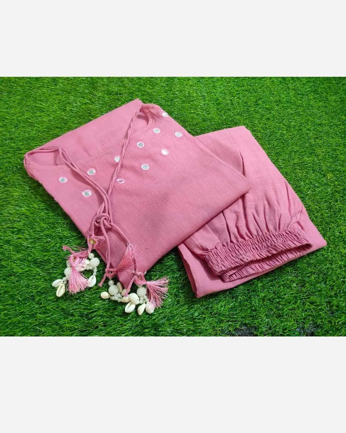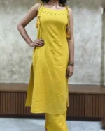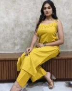 Beat the summer heat in style with QuinKart's New Summer Special Cotton Slub Co-ord Set! Designed for the gorgeous ladies of India, this two-piece ensemble is engineered for comfort without compromising on a classy, fashionable look. Crafted from super quality Cotton Slub fabric, this set offers exceptional breathability, softness, and a textured feel that is ideal for the hot summer months. The material ensures you stay comfortable and cool all day long, making it a perfect outfit for everyday wear, casual outings, or even semi-festive gatherings. The highlight of this contemporary design is the heavy Aari Mirror Work meticulously done on the Kurti, adding a dazzling touch of traditional artistry. The sleeveless Kurti features beautiful straps and very stylish Latkans, elevating its chic appeal and making it stand out. The matching Plazo ensures a comfortable and elegant silhouette. With a Kurti length of 44 inches and a Plazo length of 39 inches, this set offers a flattering fit. It is available in 2 beautiful colors (as seen in the images: vibrant yellow and charming pink) and a wide range of sizes from M to 3XL, ensuring a comfortable and perfect fit for every body type. This Cotton Slub Coord Set is your ultimate "perfect outfit for Hot Summer," blending effortless style with supreme comfort. Experience the blend of elegance and ease – shop this exclusive QuinKart collection today and step out looking classy and confident!