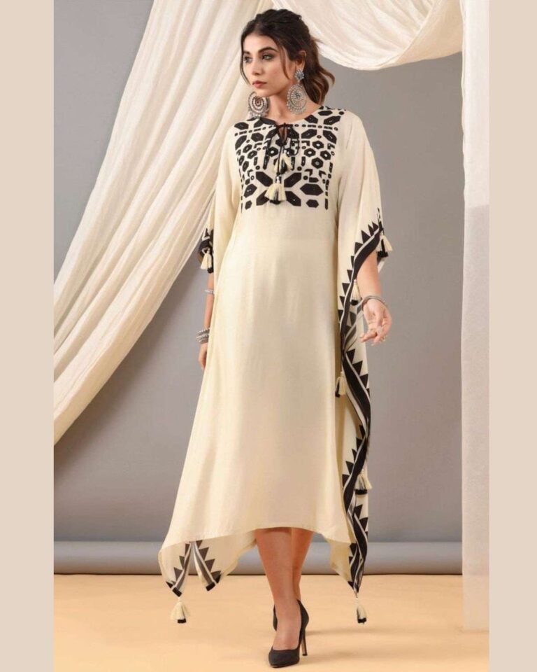 Luxurious Cream Rayon 140 GSM Khaftan with Mirror & Hand Work – QuinKart Exclusive