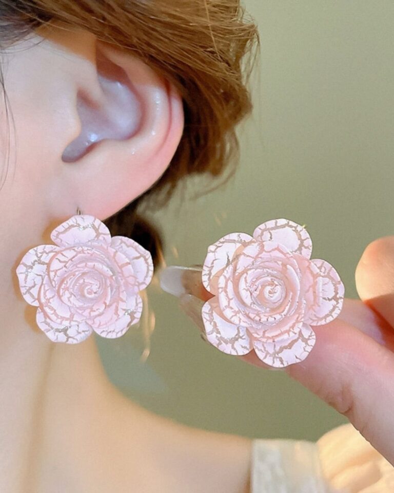 Elegant Pink Rose Rose Earrings Studs for Girls – Lightweight Floral Studs for Weddings & Parties